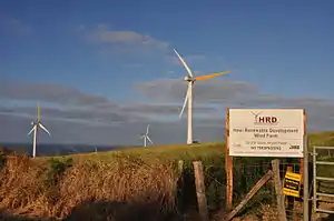 Mauna Kea causes the trade winds to divert around it, increasing wind to super-enhanced flow over the Kohala ridge.[2] On 14 May 2004, Hawaii Electric Light Company (HELCO) bought the project from enXco or EDF Renewable Energy. Since then the farm has been operated by Hawi Renewable Development LLC, but continues to provide power to HELCO. The Hawi wind farm was the first utility scaled wind farm built in Hawaii, quickly followed by the Kaheawa Wind Farm built later in 2006.