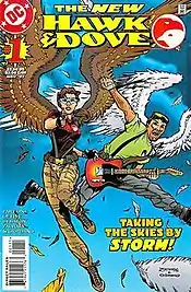 Hawk and Dove are a fictional superhero team that appear in DC Comics. Created by Steve Ditko and Steve Skeates, they in Showcase #75 (June 1968) during the Silver Age of Comic Books.[2] The duo has existed in multiple incarnations over the years across several eponymous ongoing series and miniseries, and has also appeared in a number of recurring roles and guest appearances in titles such as Teen Titans, Birds of Prey, and Brightest Day. The duo originated as teenage brothers Hank Hall as Hawk and Don Hall as Dove. Following Don's death in Crisis on Infinite Earths (1985), Dawn Granger assumed the role of Dove in Hawk & Dove #1 (October 1988). The mantle of Hawk would later be taken up by Dawn's sister Holly Granger in 2003 after Hank was killed during 1994's Zero Hour: Crisis in Time! until her death and Hank's resurrection in Blackest Night (2009). An unrelated team consisting of military cadet Sasha Martens as Hawk and rock musician Wiley Wolverman as Dove also appeared as the focus of a 1997 miniseries. The pairing of Hank and Dawn serve as the current and most commonly published incarnation of the team.