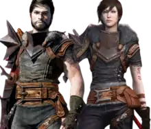 ![]() The default male (left) and female (right) Hawkes, as they appear in promotional material for Dragon Age II. | |