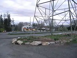 ![]() The Hawleyville Deli lies along Route 25 where it crosses the Housatonic Railroad. | |