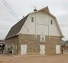 A hay hood can be built on a barn with any roof type. The type of hood is generally determined by the weather of a particular region. A barn in a semi-arid region may have no hood or just a simple pointed one. A barn in a region with frequent driving rain may have a completely enclosed hay hood. This is common in an area of western Oregon in the United States, centered on the town of Monroe in the Willamette Valley, where it is called a hay cupola. Most gambrel roofed barns in the western U.S. have pointed hay hoods.[1] Hay hoods have been built on round barns.[2][lower-alpha 1]