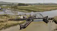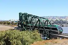 In 2015, a railroad bridge built in 1903 was removed and replaced with a refurbished bridge that could accommodate high-speed rail traffic. The $4.2 million refurbished bridge, built in 1986, was purchased from Galveston, Texas, where it had been intended to be scrapped. 125 ft (38 m) long and weighing 2.2-million lb (1.00-million kg), the "Scherzer rolling lift bascule bridge" uses a counter-weight to raise the bridge.[12][13]