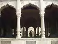 The pillars support delicate cusped arches. The central area, where Maharaja Ranjit Singh held court, has a mirrored ceiling. The pavilion consisted of two storeys until it was damaged by lightning in 1932.[3]