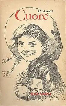 Heart (Italian: Cuore [ˈkwɔːre]) is a children's novel by the Italian author Edmondo De Amicis who was a novelist, journalist, short story writer, and poet. The novel is his best known work to this day, having been inspired by his own children Furio and Ugo who had been schoolboys at the time. It is set during the Italian unification, and includes several patriotic themes. It was issued by Treves on October 18, 1886, the first day of school in Italy, and rose to immediate success.