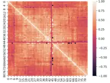 • Correlogram: A correlogram is a clustered heat map that has the same trait for each axis in order to display how the traits in the set of traits interact with each other. The correlogram is a triangle instead of a square because the combination of A-B is the same as the combination of B-A and so does not need to be expressed twice.
