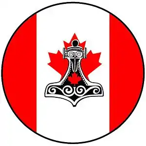 Unlike Ásatrú in the United States, the Folkish - Universalist divide is not readily apparent in Canada. This issue is dominated by factions of those Heathens claiming that only those of Germanic ancestry may practice the folk-way (Folkish) while others claim that no such requirement exists (Universalist). It is the attitude of most Canadian Heathens that no person has the right to discriminate against another's willingness to adherence to heathen custom and many Canadian Heathen organizations have reaffirmed that.[10][11] In Canada, due in no small part to the multicultural nature of Canadian society, racialism is marginalized within the mainstream Heathen community. However, some white supremacist and neo-Nazi organizations in Canada do co-opt Heathen symbols for their own purposes, but are outcast by Heathen organizations.[12]