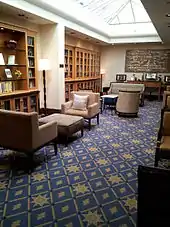 Visual art exhibits that change seasonally can be viewed on the mezzanine. These exhibits are curated by Portland's Elizabeth Leach Gallery. The Heathman also has a library on the mezzanine level containing a large collection of books signed by authors who have been guests at the hotel.[20]