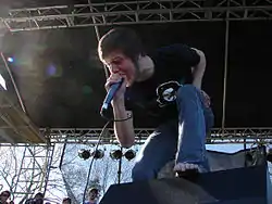 However, some nu metal songs have lyrics that are about other topics. P.O.D. have used positive lyrics about promise and hope.[68] Drowning Pool's "Bodies" is about moshing.[69] Wayne Swinny of Saliva said that the band's song "Badass" was "meant to be one of those 'sports anthem kind of songs' ".[70] According to Josh Chesler of the Phoenix New Times, the lyrics of Deftones, whose style is a mix of nu metal and post-hardcore, "tend to have complex allusions and leave the songs open to many different interpretations."[71] Raw Alternative praises the lyrics on Incubus' Make Yourself (1999), noting they are not "as angst-y as most of its nu metal contemporaries either, and instead takes turns into the philosophical and ethereal."[72] Michael Siebert states that a "significant portion of the genre’s appeal was in the lyrics", with Korn and other groups dealing with "transgressive themes"; Linkin Park "frankly addressing suicidal ideation and alienation"; and Slipknot and Mudvayne expressing "nihilistic rage".[73]