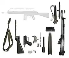 The G3 is a modular weapon system. Its butt-stock, fore-stock and pistol-grip/fire-control assembly may be changed at will in a variety of configurations (listed below). Simple push-pins hold the components in place and removing them will allow the user to remove and replace parts rapidly. The weapon made extensive use of cost-saving pressed and stamped steel components rather than machined parts and spot welding to connect parts. The stamped sheet metal cocking handle tube and receiver are large exposed parts that are prone to deformation from hard impact as they were designed to be relatively thin to save weight. If dented severely or deep enough during field service, reliability problems due to internal parts movement impairments can occur that put the rifle out of action and can not be field solved by the user. To determine and correct such situations armorers are trained to employ specially designed “GO” and symmetry gauges and straightening mandrels to fairly quickly repair such problems.[9][10]