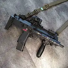 MP7A1 (note the safety trigger) with a Zeiss RSA reflex red dot sight.