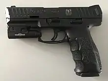 The Heckler & Koch VP9 (known as SFP9 in Europe and Canada) is a polymer-framed semi-automatic striker-fired handgun. The VP designation in the name refers to Volkspistole, which translates to "people's pistol",[4] while SFP stands for "striker-fired pistol".[5] The 9 stands for the caliber designation of 9 mm. The VP9 is the third striker-fired pistol that HK has produced. A variant of the VP9, the VP40, is chambered for .40 S&W; the VP40 is known as SFP40 in Europe and Canada.[5]