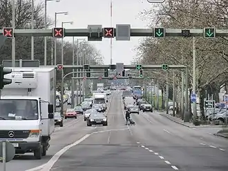 listen); literally: Army Street) runs from Theodor-Heuss-Platz in Berlin-Charlottenburg to the western city border of Berlin in the locality of Staaken in the borough of Spandau. It is part of Bundesstraße 5; from Theodor-Heuss-Platz to Wilhelmstraße it is forms part of Bundesstraße 2. With a length of around 10 kilometres, it is one of the longest streets in Berlin and an important commuter route. The street is a five-lane expressway (Kraftfahrstraße), depending on traffic flow the middle lane is available during rush hours in the morning (eastbound) and in the evening (westbound).