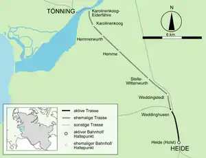 | Heide–Karolinenkoog railway | ||||||||||||||||||||||||||||||||||||||||||||||||||||||||||||||||||||||||||||||||||||||||||||||||||||||||||||||||||||||