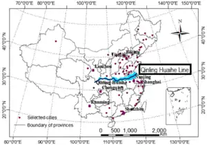 - Qinling–Huaihe Line, further subdivides eastern China in northern and southern halves