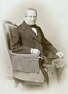In 1848 he received an appointment in the Prussian ministry for foreign affairs, and in 1853 was promoted to be privy councillor of legation (Geheimer Legationsrath).[2] Abeken remained in charge for more than twenty years of Prussian politics, assisting Otto Theodor Freiherr von Manteuffel and Chancellor Otto von Bismarck. The latter was so much pleased with Abeken's work that officials started to call Abeken "the quill [i.e., the scribe] of Bismarck." Abeken married again in 1866; his second wife was Hedwig von Olfers, daughter of the general director of the royal museums, Privy Councilor von Olfers.
