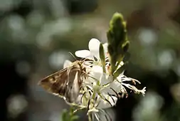 Adults have forewings that are yellowish brown in color and have a dark spot located in the center of their body.[17] The moths have a wingspan ranging from 32 to 45mm, and live over thirty days in optimal conditions.[17] However, the life span ranges from five to fifteen days on average.[17] They are nocturnal and hide in vegetation during the day.[17] Adult moths collect nectar or other plant exudates from a large number of plants, and live for 12 to 16 days. Females can lay up to 2,500 eggs in their lifetime.[3]