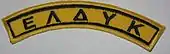 The patches are dark green (low visibility patches) in the combat military uniforms, and yellow in the formal uniforms. Unofficially, these patches are called: eldykosima (Greek: ελδυκόσημα), singular: eldykosimo (Greek: ελδυκόσημο), which means: "the badge of ELDYK". The uniform camouflage pattern is the Greek Lizard.