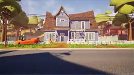 In Hello Neighbor, the player finds themselves moving into a new house across the street from a mysterious neighbor who is behaving in a paranoid manner and seems to be keeping a secret in his basement. The player's task is to break into the neighbor's home and solve a series of puzzles to gather the items needed to unlock and access his basement. As the player explores the neighbor's house, they must not be spotted by the mysterious neighbor, or they will be chased down, and if the player is not quick enough to hide or escape, captured. The player can stun the neighbor by throwing objects at him for an easier escape. If the player is caught (or suffers a serious injury), they will be sent back to their own house and will have to break in again. Upon starting again, the player must be more careful, as the neighbor will deduce movements from the last attempt to set up traps.[7] However, the player can use the game settings to turn on "friendly" neighbor mode, preventing the neighbor from setting these traps and causing him to be less aggressive in his pursuits. However, he is still to be avoided at all costs.[8]