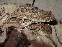 The helmethead gecko (Tarentola chazaliae), also known commonly as the helmeted gecko, is a species of lizard in the family Phyllodactylidae. The species is native to the northwestern coast of Africa, where it is present in Mauritania, Morocco, and Western Sahara.[1][2] The environment in which this gecko lives is sandy and rocky desert with sparse vegetation, in a zone near the coast where the humidity is high.[3]