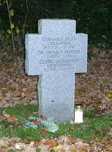 Friends arranged a fake appendectomy in a Copenhagen hospital to protect him from being arrested by the Gestapo. His stay in hospital was even prolonged with pyrogenic drugs. On the night of April 10/11, 1945, he tried to escape to Sweden by boat, but in vain. The boat was captured either by water police or by the marine coast-guard. Pfeiffer and his comrades were taken to Gestapo-HQ (Dagmar House) and subsequently transferred to Vestre Prison. On April 17, 1945, he was found strangled in his cell. Pfeiffer is buried in Copenhagen's Vestre Kirkegaard (E / 1 / 3071 1314). His grave is looked after by the German War Graves Commission.[5]