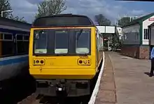 The station is also the junction of the branch line to Ellesmere Port. This service sees three trains daily in each direction, (Monday–Saturday) - two in the early morning and another in the early evening. Two of these trains continue to Warrington Bank Quay and beyond to Manchester and Leeds on weekdays only. Northern Trains operates this service. (In the picture, the train on the right has arrived from Ellesmere Port). There is no Sunday service on this line.[9]