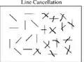 Another widely used test is the line cancellation test. Here, a patient is presented with a piece of paper that has various lines scattered across it and is asked to mark each of the lines. Patients who exhibit left-sided neglect will completely ignore all lines on the left side of the paper.[6]
