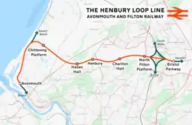 The Henbury Loop Line, also known as the Filton to Avonmouth Line is a railway line following the boundary between Bristol and South Gloucestershire between the Severn Beach Line at Hallen Marsh Junction, Avonmouth and the Cross Country Route/South Wales Main Line at Filton. It is currently only used for freight.