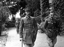 In 1920 Giraud was transferred to Morocco to fight against Rif rebels. He was awarded the Légion d'Honneur after the capture of Abd-el-Krim (1926).[8] On 20 October 1927, by now a brevet colonel with the 5th Infantry, he was appointed professor of infantry tactics at the École de Guerre,[12] where one of his students was Captain Charles de Gaulle. On 3 February 1930, Giraud was "placed at the disposal of the resident-general of France in Morocco", then Lucien Saint, and was assigned to monitor the Algerian-Moroccan borders as commander of the Moroccan frontier post of Boudenib.[13] He was promoted to brigadier-general on 22 December 1930.[14] On 11 April 1936, he was appointed military governor of Metz, commanding the 6th military region.[15]