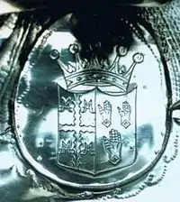 Bourchier made appeals to many persons, including the king, for his release.[5] His wife helped him in this regard and wrote to the queen assuring her of their loyalty. Bourchier whilst in bed one morning was searched by his gaolers and correspondence from his wife was confiscated, to which he objected that such correspondence between husband and wife was privileged and therefore exempt from examination.[5] He was released on 4 August 1643,[5] but on condition that he should go into exile on the Continent and not serve the king.[5] These conditions he ignored and two days after his release he wrote to the king and set off for the royal court then at Oxford. In October 1643 he wrote to his wife in Devon to "remember me to as many in that country as you think worth the remembering", a sign of his disenchantment with the Parliamentarian members of the gentry of Devon, his neighbours and former friends.[13] On 22 January 1644, in the Oxford Parliament he was appointed by the king as Lord Privy Seal,[5] which office had previously been held 1572–73 by his maternal grandfather Lord Howard of Effingham. He held the post of Lord Privy Seal for the remainder of his life. He was appointed in 1644 Commissioner for the Defense of Oxford. In the Summer of 1644, on the approach of the Parliamentarian army from the east, Bourchier and his wife fled from Tawstock and Devon into the far west of Cornwall. For this action he was publicly criticised by certain royalists for having abandoned his post, and petitioned the king for redress to what he viewed as a slander, stating that he feared for his safety and was thus entitled to withdraw. However, in another account he claimed he went to Cornwall to inspect one of poorly performing estates.[14] In June 1645 the 15-year-old Prince Charles (the future King Charles II) visited Bourchier at Tawstock Court, which event is recorded in the surviving Tawstock household accounts. (Prince Charles had been sent for his safety from plague-stricken Bristol to Barnstaple, where he stayed at the house of Grace Beaple (d.1651), widow of the merchant Richard Beaple (d.1643), thrice Mayor of Barnstaple, from about 15 June to 8 July)[15] Amongst the provisions purchased for the occasion were lobsters, artichokes, raspberries and masards, a cherry long grown in the locality. A cook was brought in from nearby Barnstaple and payments were made to the Prince's own cooks and musicians.[14]