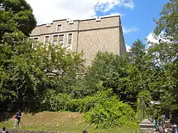 Henry H. Houston Elementary School is a historic elementary school located in the Mount Airy neighborhood of Philadelphia, Pennsylvania. It is part of the School District of Philadelphia. The building was designed by Irwin T. Catharine and built in 1926–1927. It is a three-story, nine bay, brick building on a raised basement in the Late Gothic Revival-style. It features a projecting stone entryway with Tudor arched opening, stone surrounds, and a crenelated parapet.[2]