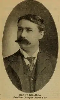 In late January 1902, shortly after announcing his sale of the Milwaukee club, Killilea announced that he had in August 1901 acquired five-ninths of the Boston Americans from Charles Somers and had more recently acquired the remaining four-ninths. However, it was agreed that Somers would continue to hold one share of stock so that he could remain the club's president.[16] The Boston Post at the time described the Killilea brothers as "capable baseball men" and noted that Henry had "been immensely fortunate and built a big legal practice" and become "one of the wealthiest attorneys" in Milwaukee.[17] Killilea reportedly paid $60,000 for the Boston ball club.[4]