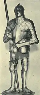 King James VI and I and Anne of Denmark visited Ditchley on 15 September 1603 with the French ambassador and a duke, who Arbella Stuart called the "Dutchkin."[10] Three suits of armour were made for Sir Henry Lee by the renowned Greenwich armoury, and are depicted in the album of drawings left behind by that workshop. Portions of the armour survive to the present day. One of the armours currently stands in the hall of the Armourers and Brasiers company in London.