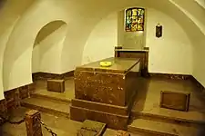 In 1924, after Poland had regained her independence, Sienkiewicz's remains were repatriated to Warsaw, Poland, and placed in the crypt of St. John's Cathedral.[29] During the coffin's transit, solemn memorial ceremonies were held in a number of cities.[29] Thousands accompanied the coffin to its Warsaw resting place, and Poland's President Stanisław Wojciechowski delivered a eulogy.[29]