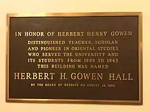 - "Herbert H. Gowen papers, 1909-1951". Archives West. Orbis Cascade Alliance. Retrieved March 19, 2017.