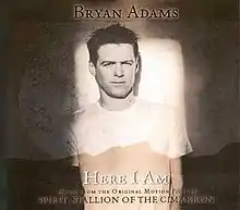 "Here I Am" is a song co-written and recorded by Canadian singer Bryan Adams. The song was written and recorded in 2002 for the movie Spirit: Stallion of the Cimarron and was both released on the official soundtrack and as a single. "Here I Am" reached number one in the Czech Republic and Portugal, number five in the United Kingdom and on the US Billboard Adult Contemporary chart, and the top 20 in at least 10 other European countries. The song won an ASCAP Award and was nominated for Golden Globe Award for Best Original Song. Adams also recorded a French version called "Me voilà".
