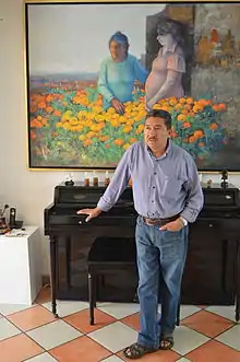Hermenegildo Sosa (born April 12, 1946)[1] is a Mexican painter and art professor who is best known for colorful depictions of Mexican rural landscapes, especially those of his home state of Tlaxcala. He was born there into a farming family, whose economic condition delayed his education as he had to work from a young age. In his teens he arrived to Mexico City to work as a domestic, but this allowed him to attend school, including painting classes. Eventually, he entered the Escuela Nacional de Pintura, Escultura y Grabado "La Esmeralda", where he eventually gained a career as a professor.