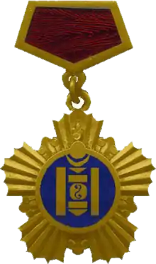 The title of Hero of Labour of Mongolia (Mongolian: Монгол улсын хөдөлмөрийн баатар), formerly known as the Hero of Labour of the Mongolian People's Republic, was a state decoration of the Mongolian People's Republic and is an award of Mongolia. It is the highest state award given to those with outstanding achievements in the development of the country.