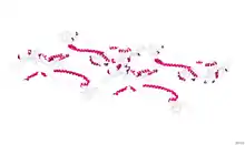 The herpesvirus glycoprotein B is a type-1 transmembrane protein with a signal sequence at its N terminus.[2] The crystal structure of herpes simplex virus (HSV) type-1 and Epstein-Barr virus glycoprotein B ectodomains were solved as a trimer, revealing five structural domains (I-V).[3][4] Domain I contains two internal fusion loops, thought to insert into the cellular membrane during virus-cell fusion.[5] In HSV, domain II is hypothesized to interact with another herpesvirus glycoprotein, gH/gL, during the fusion process.[6] Domain III consists of a structurally important elongated alpha helix, while domain IV is hypothesized to interact with cellular receptors.[7] Finally, domain V acts in conjunction with domain I during protein-lipid interactions. In HSV, neutralizing monoclonal antibodies map to structural domains I, II, IV and V.[7] Due to its unique structure, herpesvirus glycoprotein B (along with vesicular stomatitis virus glycoprotein G and baculovirus gp64) belongs to a new class of viral membrane fusion glycoproteins, class III.[3]
