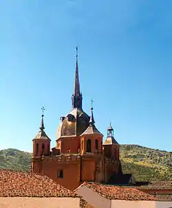 Herrerian buildings stand out for their severe horizontality, achieved thanks to the balance of shapes, preferably cubic, that are arranged symmetrically in the structure. In general, they have wooden roofs clad on the outside with slate and lateral towers, finished off in conical or pyramidal quadrangular spiers finished in points, known as Madrid-style spiers or simply as Madrid spire, which introduce an element of verticality and magnificence, to the time that helps to reinforce the feeling of symmetry.