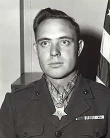 In September 1945, he returned to the United States, and on October 1 he joined Marine Corps Headquarters in Washington, D.C. He and thirteen other servicemen were presented the Medal of Honor by President Harry S. Truman on October 5, 1945, at the White House.[6]