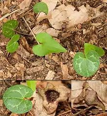Hexastylis or heartleaf is a segregate of the genus Asarum, in the family Aristolochiaceae. The group comprises ten species endemic to southeastern North America. It is a perennial, evergreen, herbaceous plant with leaves and flowers arising directly from the rhizomes. Hexastylis was once recognized at the level of genus, and in some floral treatments still is, yet it has been shown through morphological and molecular evidence that it is rooted within the genus Asarum.[1]