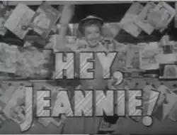 Hey, Jeannie! premiered on CBS on September 8, 1956.[1][2][3] CBS cancelled it after a single season, and the last of its 26 original episodes on CBS aired on March 16, 1957.[3] CBS then broadcast reruns of Hey, Jeannie! for another seven weeks, from March 23 to May 4, 1957.[1][3] The show aired from 9:30 to 10:00 p.m. Eastern Time on Saturdays throughout its CBS run.[1][2][3]