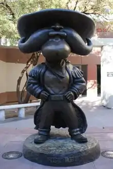 A statue of the mascot Hey Reb! was installed outside the Tam Alumni Center at the University of Nevada, Las Vegas, United States.