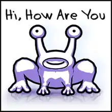 Hi, How Are You is a third-person platform game that is based on the art and music of Daniel Johnston. It was developed by Peter Franco and Stephen Broumley of Dr Fun Fun and Smashing Studios for the iPhone and iPod Touch. Players control Jerimiah the frog and navigate platform mazes in order to win back his true love from Satan.