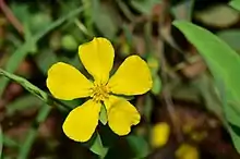 Hibbertia nymphaea is a species of flowering plant in the family Dilleniaceae and is endemic to the south-west of Western Australia. It is a prostrate or straggling shrub that typically grows to a height of 40 cm (16 in) and flowers between August and October producing yellow flowers.[2] It was first formally described in 1904 by Ludwig Diels in Botanische Jahrbücher für Systematik, Pflanzengeschichte und Pflanzengeographie.[3] The specific epithet (nymphaea) is a reference to nymphs who live in fountains and rivers.[4]