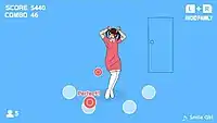 In Hide & Dance!'s main mode, players primarily play as a girl and must press buttons in accordance to the ones displayed on the screen in order to dance. While dancing, the girl's mother will occasionally enter the room and result in a game over if the player continues dancing. To avoid the game over, players must stop dancing when the mother enters the room. The game features 10 different songs the player can dance to,[2] with each song having 3 different difficulty settings.[1] After clearing songs, players receive in-game coins, which can be used in a gashapon machine to unlock new songs and characters to play as.[1] The game has a multiplayer mode, which supports up to two players.[2]