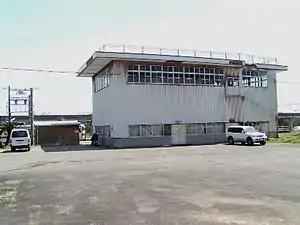 ![]() Higashi-Tsuno Station in 2005. The station is the small shed to the left. The large building (now demolished) was the visitors centre of a MAGLEV experimental railway. | |