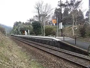 The station is served by the Kitto Line and is located 13.5 km from the starting point of the line at Miyakonojō.[3]