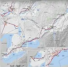 On May 19, 2017, Ontario Premier Kathleen Wynne and Transport Minister Steven Del Duca announced the first steps in having a high-speed rail route in place by 2025 from Toronto to London, extending to Windsor by 2031, based on the recommendations on Collenette's report. The environmental assessment for this would reportedly be coordinated with the Metrolinx project to enable two-way, all-day GO Transit trains to Kitchener and will be sharing that corridor. Premier Wynne also said that design and planning would commence "immediately" along with the assessment. The announcement was criticized as a re-election tactic in anticipation for the 2018 Ontario general election, as the Liberal Party had announced similar plans for high speed rail in 2014, also ahead of a general election that same year.[47] However, with the election of a majority government for the Progressive Conservative Party of Ontario, the future of the high-speed rail proposal inherited from the Liberal Party became uncertain.[48][49] In late 2018, it was reported that the new Ford government, while not outright cancelling the high-speed rail proposal, was expanding its scope to include alternatives such as increased Via Rail service, more bus capacity or improved highway infrastructure.[50] The 2019 provincial budget paused all funding for the high-speed rail proposal.[51]