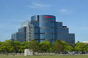 In 1900, the Dominican Order established the Dominican College of Philosophy and Theology that later became the Dominican University College.[14] In 1906, controversy over the role of the Ontario government and the leadership of the University of Toronto led to the Flavelle commission that articulated a separation of powers, resulting in the widespread adoption of the bicameral model for university governance in Canada.[15] In 1911, the Evangelical Lutheran Church in Canada founded the Waterloo Lutheran Seminary that was associated with the development of the University of Waterloo and Wilfrid Laurier University.[16] Higher education was a low-priority under the provincial government of Mitchell Hepburn due to the effects of the Depression but universities supported the national war effort through funding from the government of Canada.[17] In 1942, the Ottawa Association for the Advancement of Learning established the non-denominational Carleton College that later became Carleton University. By 1945, there were three publicly supported secular universities, six denominational private colleges, and several vocational institutes.[18]